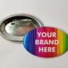 Medidas de la chapa con alfiler o imán ovalado: 6,8 x 4,4 cms.